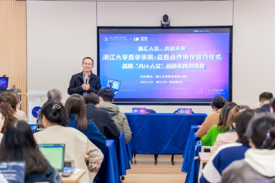 25日下午,浙江大学哲学学院-豆包合作协议签约仪式在浙江大学紫金港校区举行,双方代表共同为新成立的“AI人文创新实验室”揭牌。哲学学院院长王俊在现场表示,“AI人文创新实验室”这个跨界舞台不是新技术和人文的简单叠加,而是要构建一套“人文引领技术、技术反哺人文”的共生体系。希望借助此次合作,培养学生“用人文思维驾驭技术、用技术手段阐释人文”的复合能力。