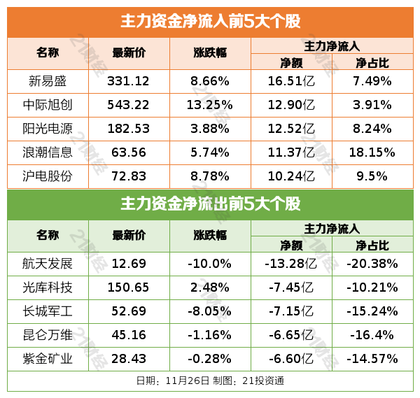 11月26日,深成指、创业板指双双低开高走,创业板指盘中一度涨超3%。截至收盘,沪指跌0.15%,深成指涨1.02%,创业板指涨2.14%。沪深两市成交额1.78万亿元,较上一个交易日缩量288亿元。