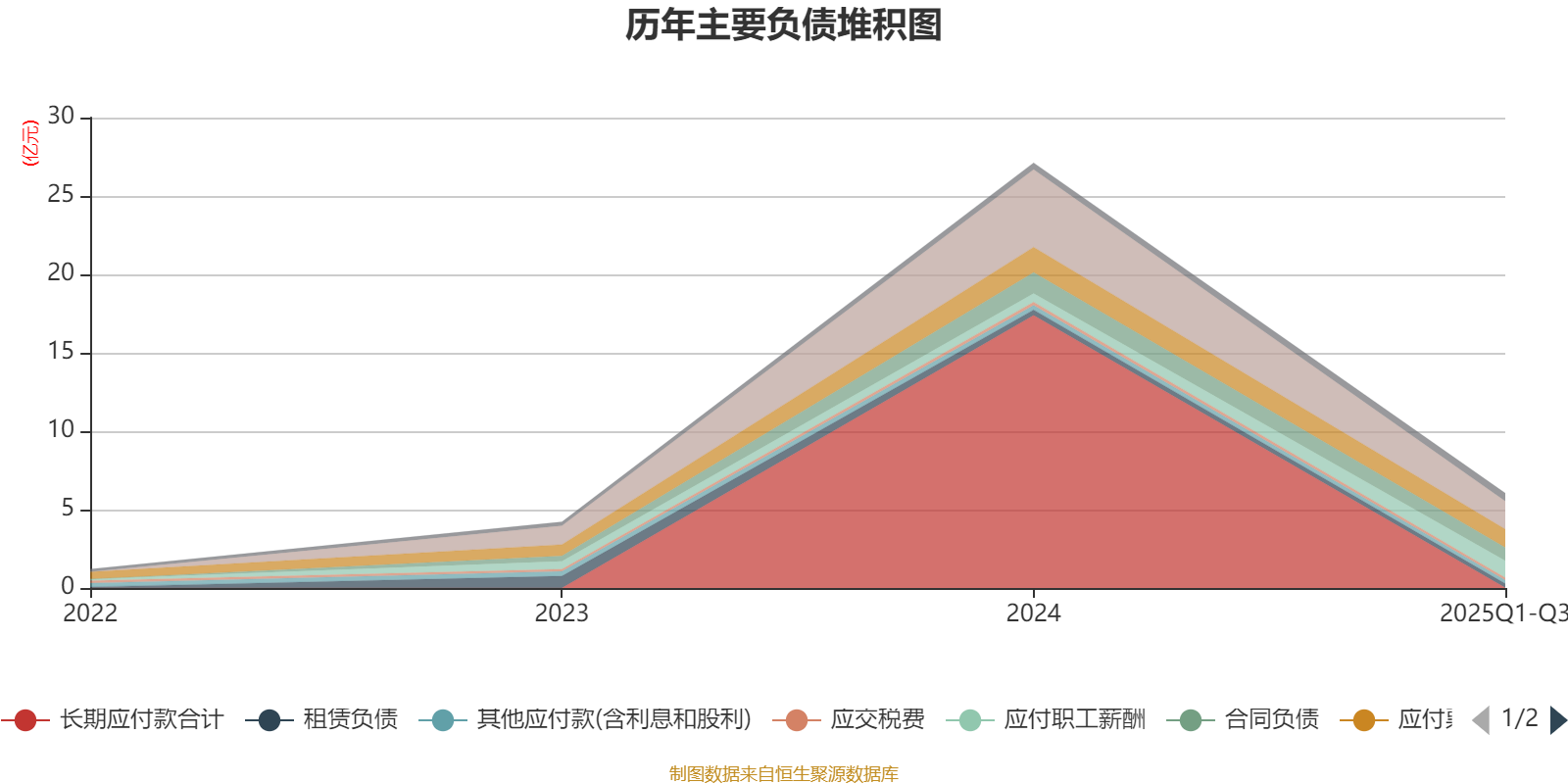 负债重大变化方面,截至2025年三季度末,公司长期应付款合计较上年末减少99.89%,占公司总资产比重下降44.69个百分点;短期借款较上年末减少63.99%,占公司总资产比重下降10.96个百分点;应付票据及应付账款较上年末减少27.37%,占公司总资产比重下降2.98个百分点;合同负债较上年末减少37.33%,占公司总资产比重下降2.63个百分点。