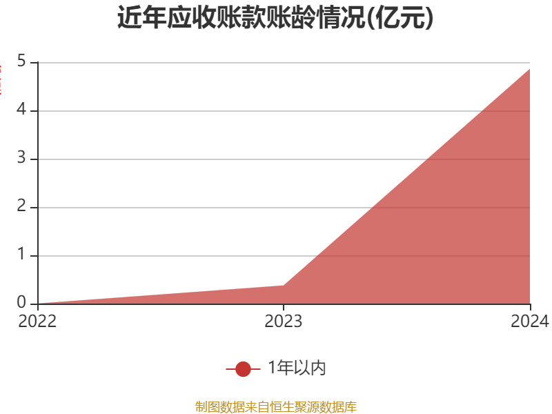 从应收账款账龄结构来看,截至2024年末,公司账龄在1年以内的应收账款余额为4.86亿元,较上年末增长4.48亿元。
