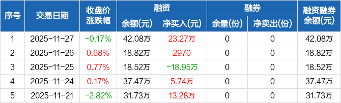 A500ETF基金:融资净买入23.27万元,融资余额42.08万元(11-27)