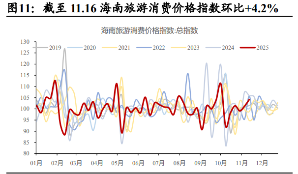 消费景气线索增多,值得关注:1)内需景气线索有所增多,旅游和长途出行景气连续改善,或反映地产和耐用品消费收缩之余,“吃喝玩乐”相关的服务型和大众品消费复苏趋势开始显现。