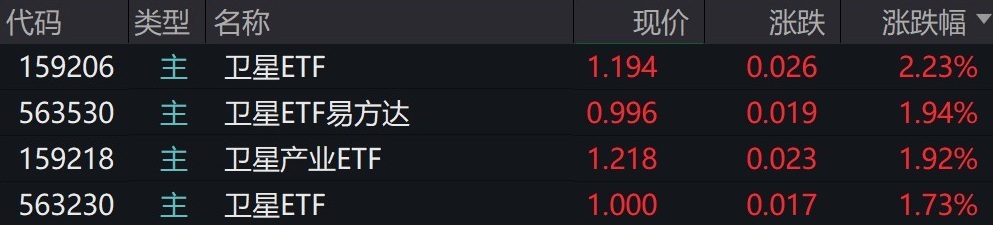 卫星概念股走强,华力创通涨超4%,振芯科技涨超3%,航天电子、中国卫星、隆盛科技涨超2%。