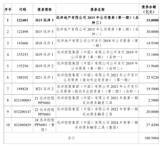 根据远洋控股公告,自2023年以来,远洋控股全力以赴保交付、化风险、稳经营,尽管取得了积极成效,维持了总体稳定的有利局面,但是资产负债结构依然承压,流动性仍然紧张。经间接控股股东远洋集团协调,远洋控股拟对10只债券进行重组,涉及金额合计180.5亿元。