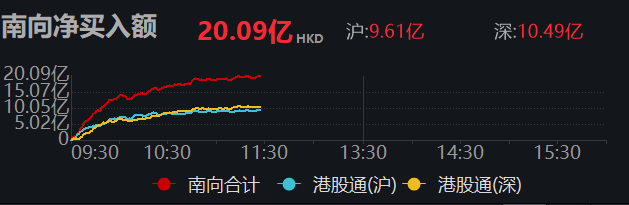 11月28日11时27分,南向资金净买入超20亿港元。