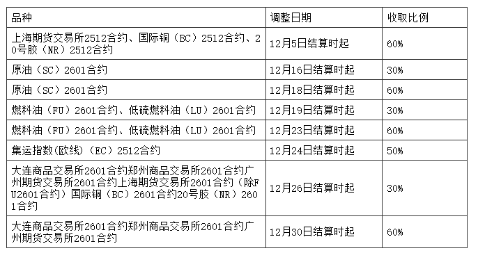 如实际调整日期或收取比例与上述不符,请以官网最新公告为准。各品种限仓细则请参见各交易所相关管理办法,或致电400-980-1818详询。