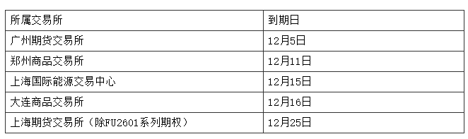根据各交易所相关规定,2601系列商品期权到期日如下: