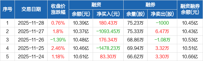 太极实业:融资净买入180.43万元,融资余额10.39亿元(11-28)