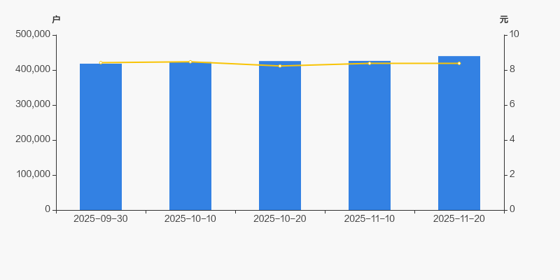 2025年9月30日至今,公司股东户数有所增长,区间涨幅为5.18%。2025年9月30日至2025年11月20日区间股价下降0.48%。