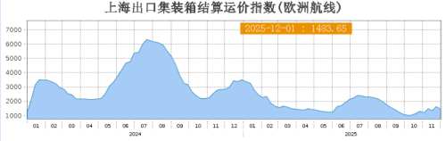 截至2025年12月1日 上海出口集装箱结算运价指数(欧洲航线)报1483.65点