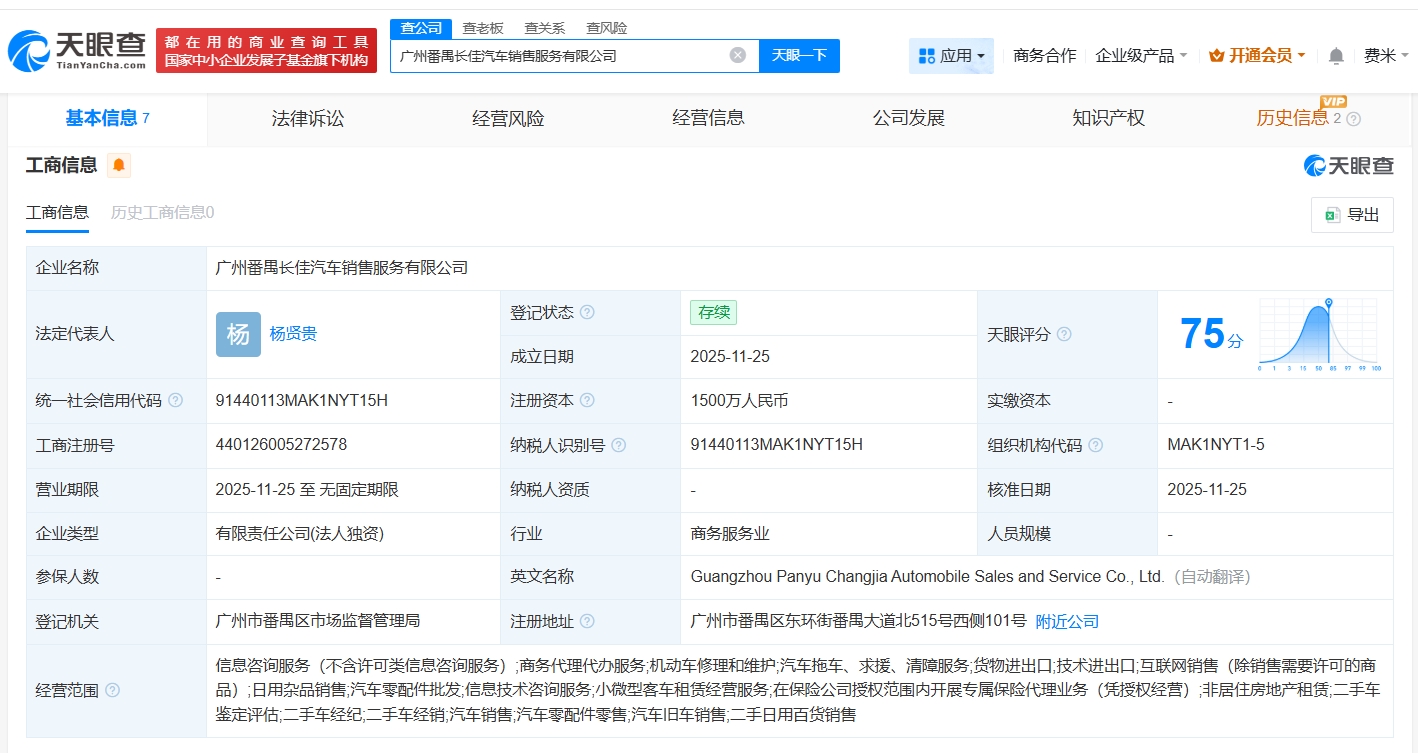 广汽集团在广州番禺成立新汽车销售服务公司