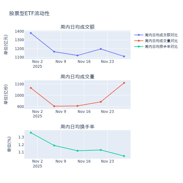 流动性方面,上周股票型ETF市场日均成交额减少7.3%,日均成交量增加17.8%,换手率减少0.07%。