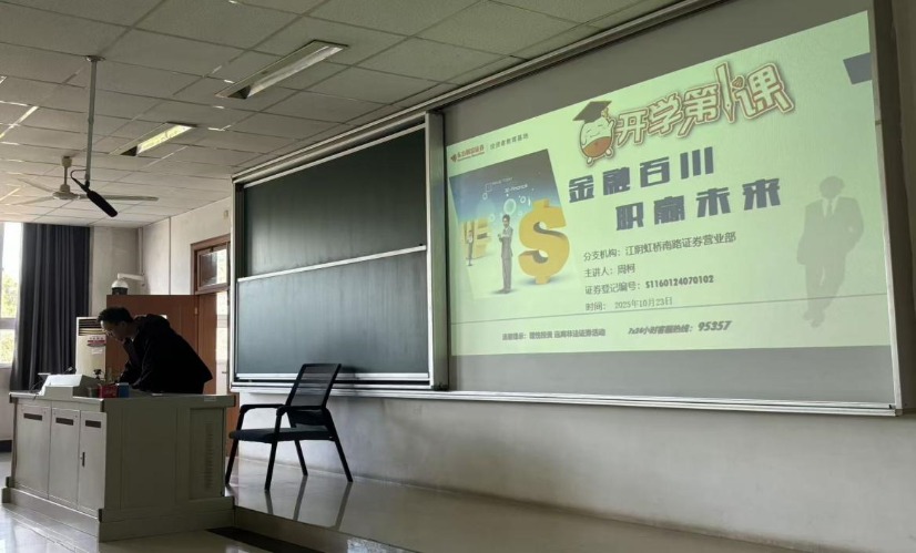 为积极响应中国证券业协会“投资者教育进百校”的活动倡议,深入践行“将投资者教育纳入国民教育体系”的理念,并结合开学第一课专项活动,2025年10月23日,东方财富证券投资者教育基地走进走进南京财经大学,开展以“投资者教育进百校—金融百川职赢未来”为主题的投资者教育活动。本次活动由江阴虹桥证券营业部承办,主讲人为营业部总经理周柯,旨在帮助在校大学生了解中国金融市场发展历史,做好理财规划;以及帮助同学们做好从事金融职业发展规划,加强对非法校园贷的防范意识。活动通过线下投教的方式开展,活动现场参与人数共计120人。