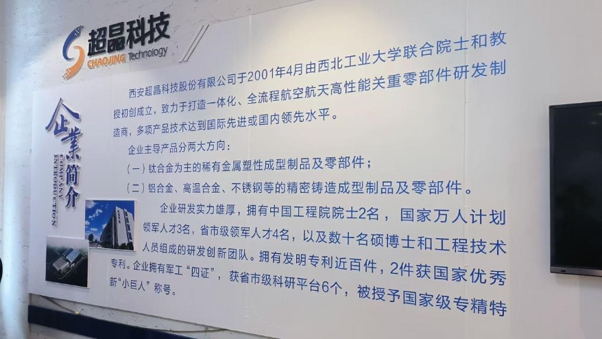 随后,投资者走进超晶科技产品展厅,近距离接触公司核心产品矩阵。展厅内,以钛合金为主的稀有金属塑性成型制品及零部件,以及铝合金、高温合金、不锈钢等精密铸造成型制品及零部件有序陈列。工作人员详细介绍,公司拥有先进的钛及钛合金材料生产线,可生产近多种钛合金牌号的丝材、棒材、板材、管材等产品,所有产品均严格符合国标、航标、型号标准等要求,广泛应用于航空航天、飞行器等关键零部件制造,其技术先进性与产品可靠性获得投资者高度关注。