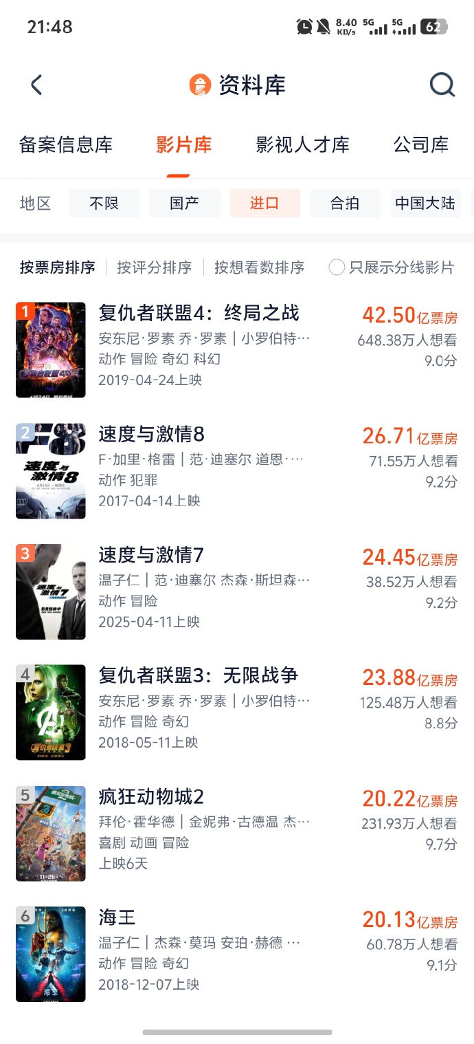 《疯狂动物城2》进入中国影史进口片票房前五