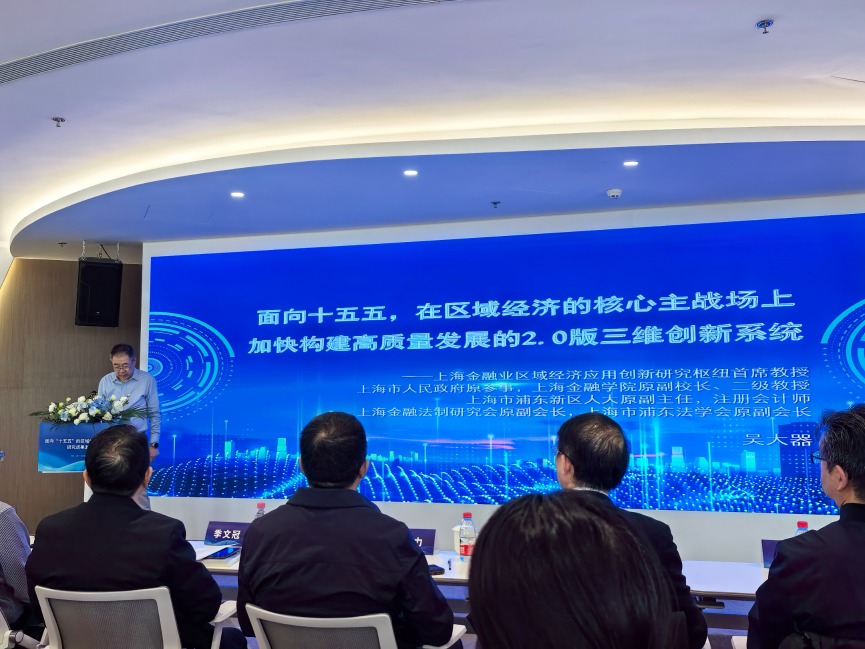 近日,由上海立信会计金融学院、上海金融业联合会、上海市浦东新区金融促进会和长三角日报共同举办的面向“十五五”的区域经济合作与协同研究成果发布会在上海举行。上海金融业区域经济应用创新枢纽首席教授、上海市人民政府原参事、上海金融学院原副校长吴大器发表主题分享,系统梳理了其团队深耕长三角区域经济研究的历程与成果,重磅发布面向“十五五”的长三角区域经济高质量发展2.0版三维创新系统构想,为区域经济协同发展提供了兼具理论深度与实践价值的智库支撑。