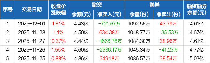 芯片ETF:融资净偿还721.67万元,融资余额4.43亿元(12-01)