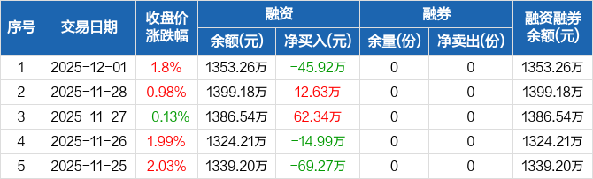 电子ETF:融资净偿还45.92万元,融资余额1353.26万元(12-01)