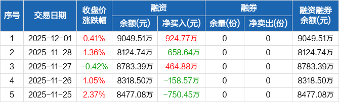 电池50ETF:融资净买入924.77万元,融资余额9049.51万元(12-01)