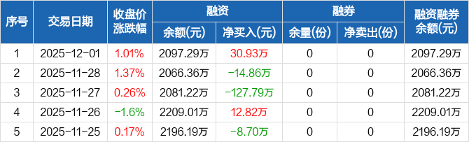 通用航空ETF:融资净买入30.93万元,融资余额2097.29万元(12-01)