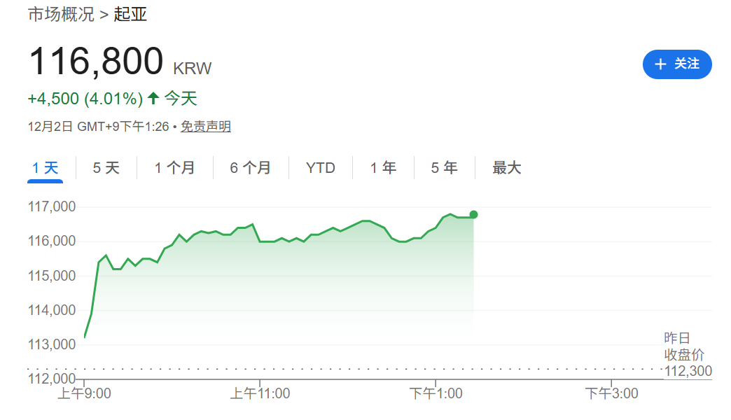 12月2日,在美国商务部长卢特尼克确认对韩国汽车实施15%的较低关税并自11月1日起追溯生效后,韩国汽车股走高。