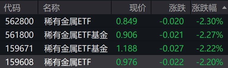 稀有金属概念股走弱,稀有金属ETF跌超2%