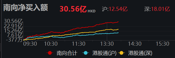 上证报中国证券网讯 12月2日13时56分,南向资金净买入超30亿港元。