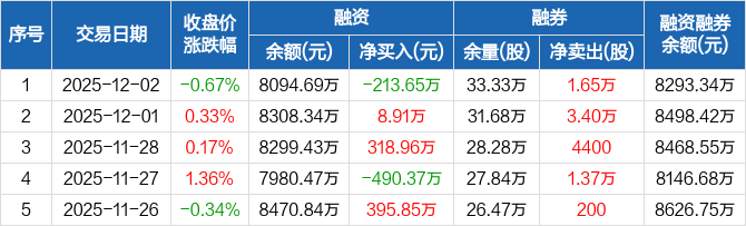 方大特钢:融资净偿还213.65万元,融资余额8094.69万元(12-02)