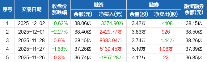 中微公司:融资净偿还3374.9万元,融资余额38.06亿元(12-02)