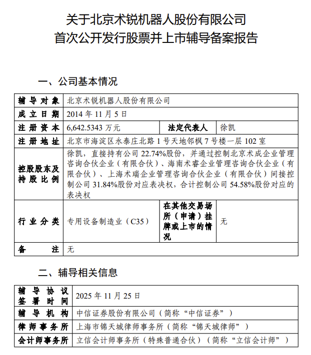 时创意、术锐机器人等3家企业启动A股IPO辅导