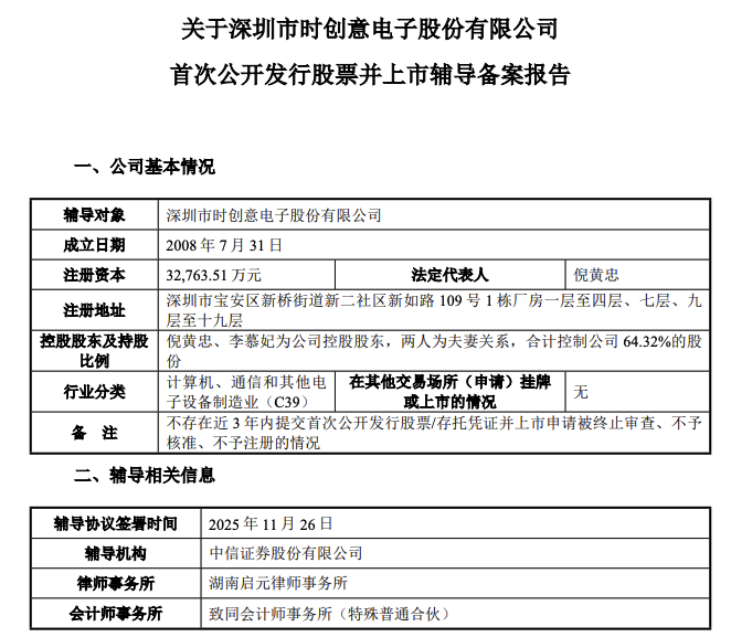 12月2日,证监会网站披露,深圳市时创意电子股份有限公司、北京术锐机器人股份有限公司、纽氏达特行星传动系统技术(淄博)股份有限公司已启动A股IPO辅导。