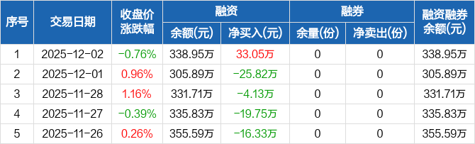 中证500ETF基金:融资净买入33.05万元,融资余额338.95万元(12-02)