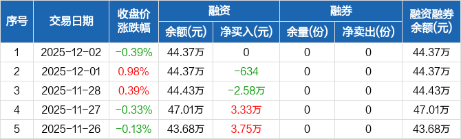 央企ETF:融资净买入0元,融资余额44.37万元(12-02)