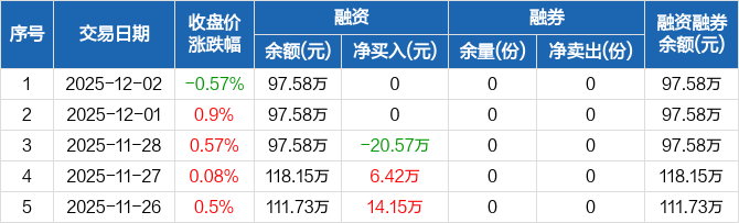 中证A500ETF基金:融资净买入0元,融资余额97.58万元(12-02)