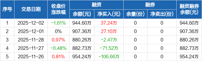 光伏50ETF:融资净买入37.24万元,融资余额944.6万元(12-02)