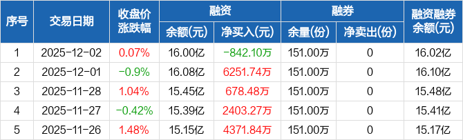 纳指ETF:融资净偿还842.1万元,融资余额16亿元(12-02)