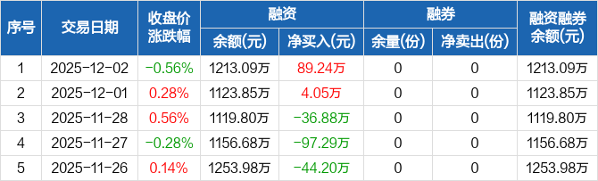 食品饮料ETF天弘:融资净买入89.24万元,融资余额1213.09万元(12-02)