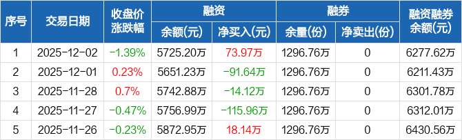 医疗ETF:融资净买入73.97万元,融资余额5725.2万元(12-02)