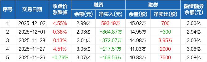 泰胜风能:融资净买入593.19万元,融资余额2.99亿元(12-02)