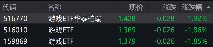游戏概念股早盘走弱,游戏ETF跌近2%
