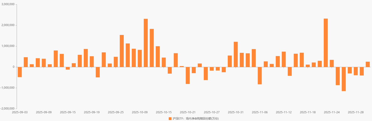 昨日(12月2日),东方财富Choice数据显示,场内股票型ETF净申购25.97亿份;其中,沪市股票型ETF净申购24.18亿份,深市股票型ETF净申购1.79亿份。以最新净值计,昨日市场净申购8.98亿元。