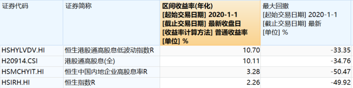 从历史表现来看,自2020年初以来,恒生港股通股息低波动R(全收益指数)累涨80.85%,区间年化涨幅10.70%,最大回撤-33.35%,风险收益比优于同类港股红利类指数。