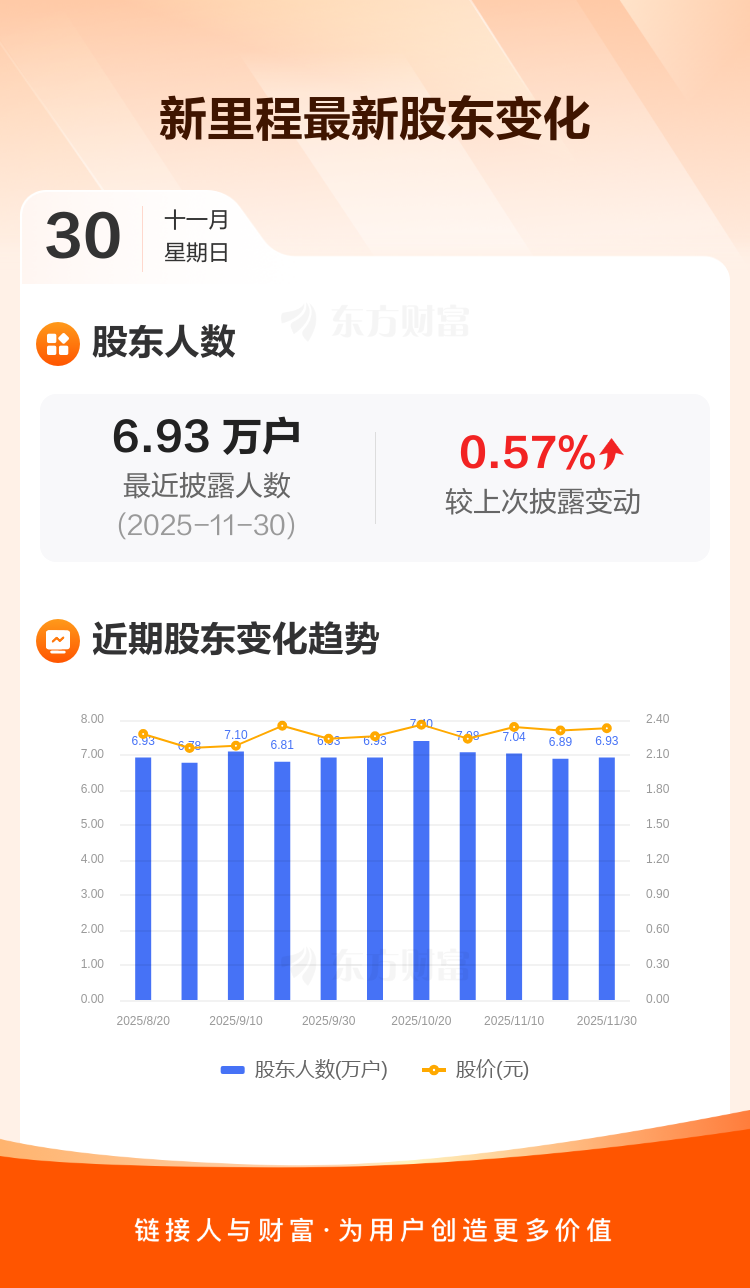 新里程:截至11月30日最新股东户数6.93万户,较上期增加0.57%