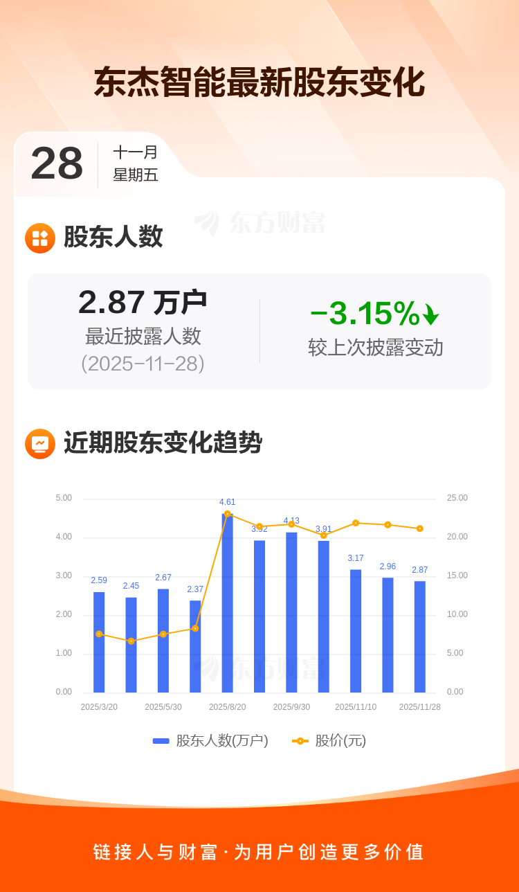 东杰智能:截至11月28日最新股东户数2.87万户,较上期减少3.15%