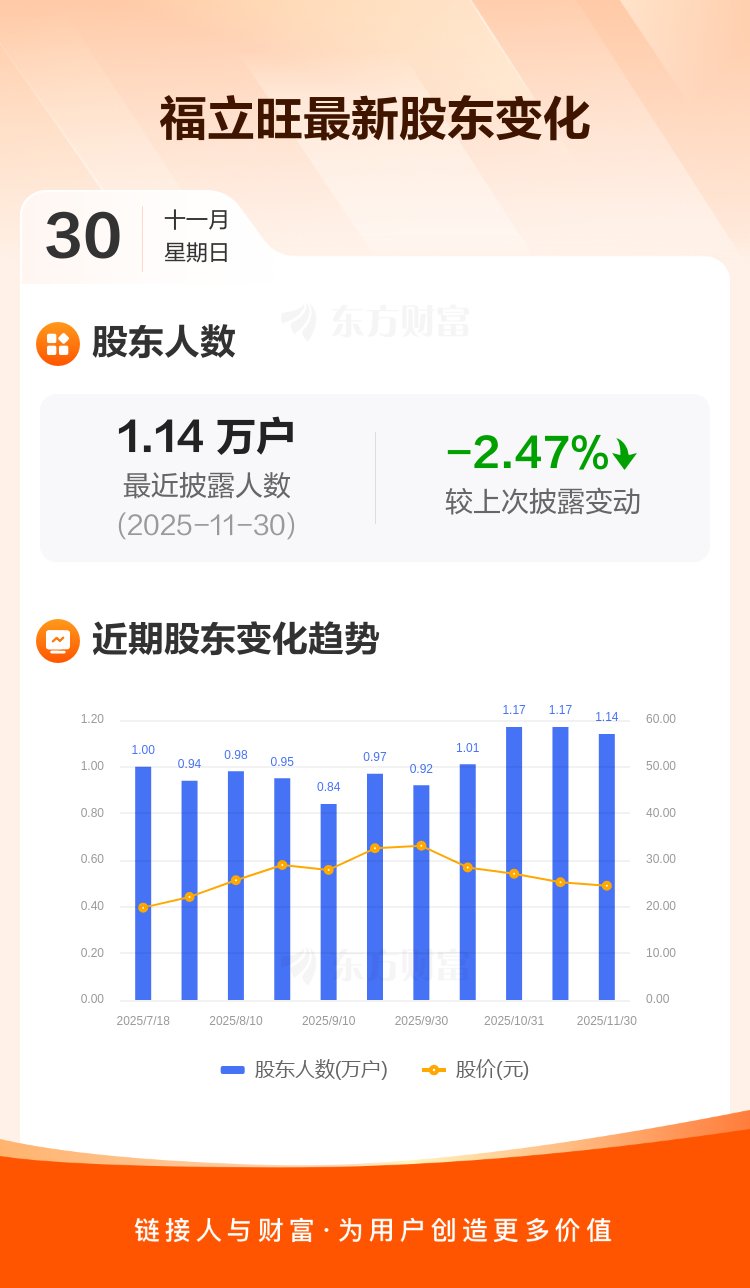 福立旺:截至11月30日最新股东户数1.14万户,较上期减少2.47%