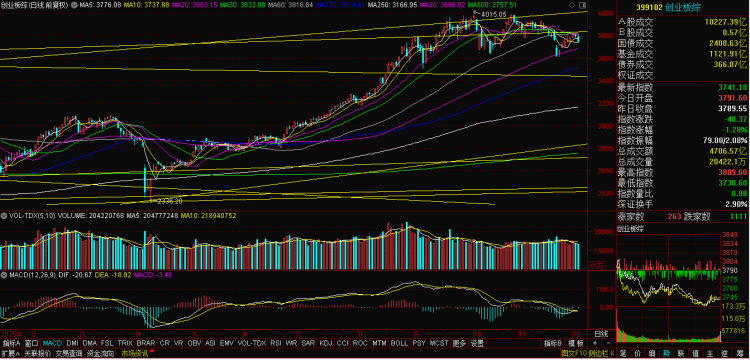 周三(12月3日)A股延续普跌行情。截至终盘:上证指数收报3878.00点,小跌19.71点,跌幅0.51%;深证综指收报2440.97点,小跌21.29点,跌幅0.86%;科创综指小跌0.95%;中小综指小跌0.73%;创业板综指下跌1.28%。A股成交金额合计16835.56亿元,比周二放大5%。