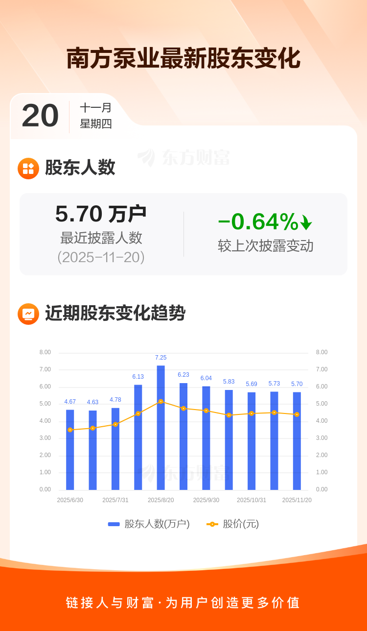 南方泵业:截至11月20日最新股东户数5.70万户,较上期减少0.64%