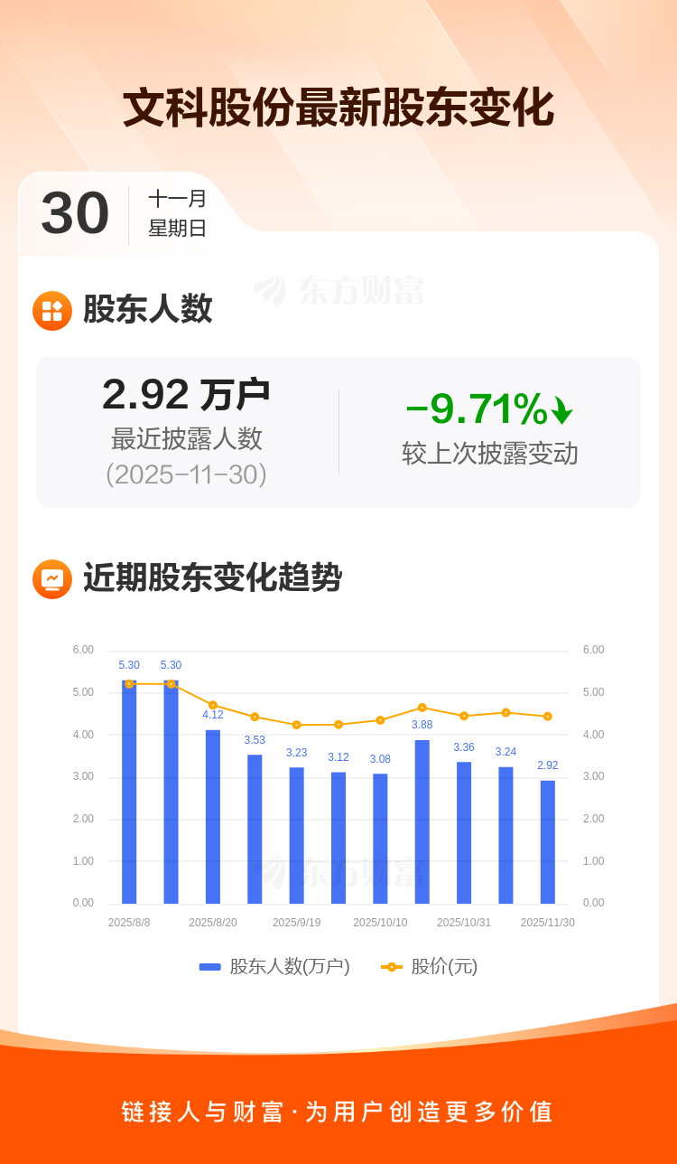 文科股份:截至11月30日最新股东户数2.92万户,较上期减少9.71%