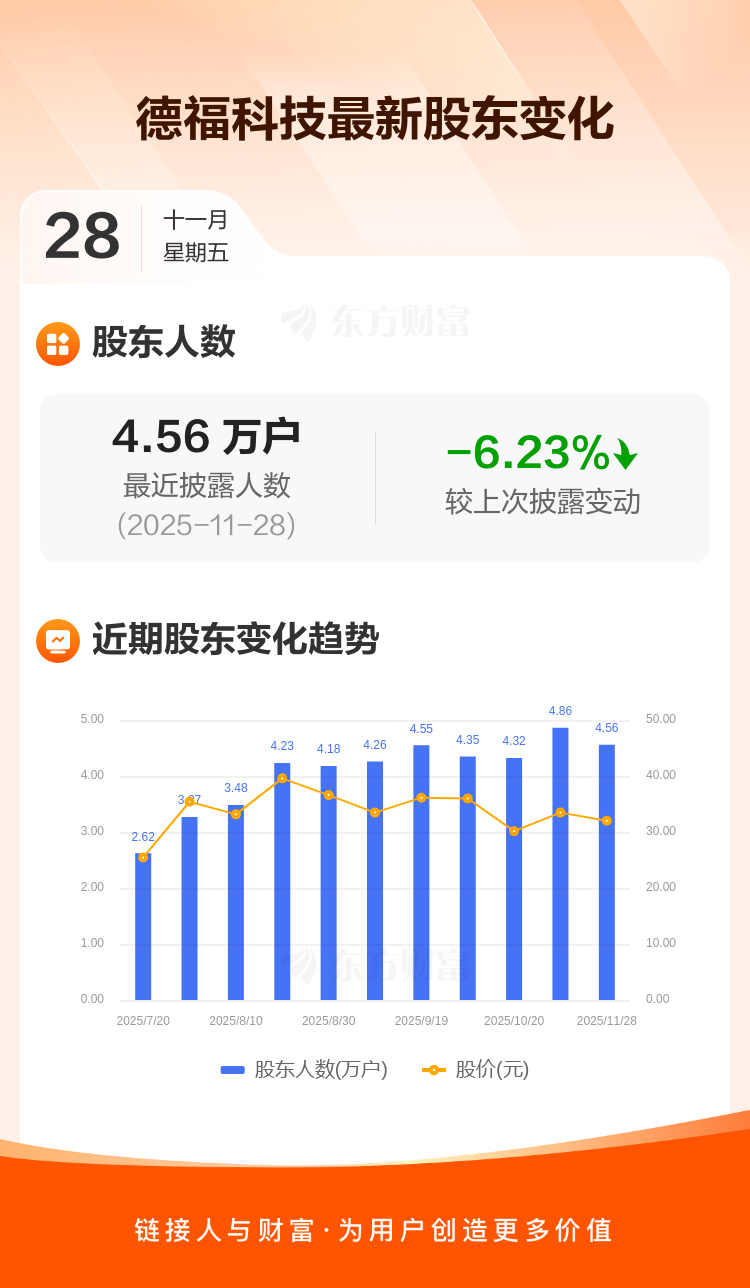 德福科技:截至11月28日最新股东户数4.56万户,较上期减少6.23%