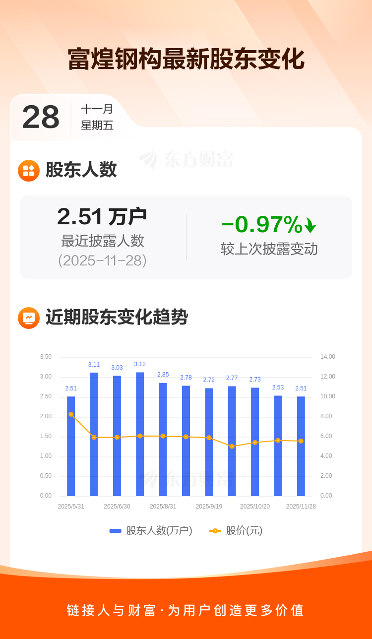 富煌钢构:截至11月28日最新股东户数2.51万户,较上期减少0.97%